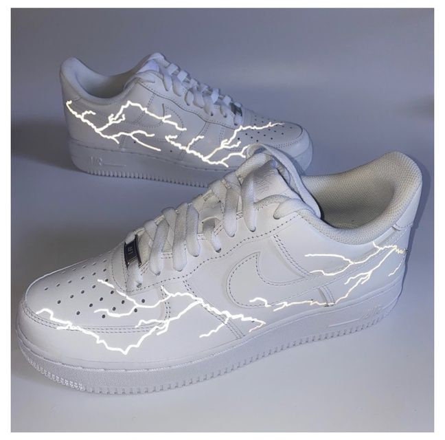 Reflective Lightning Airforce Black Custom Nike Shoes Air Force Air Force Shoes Custom Nike Shoes